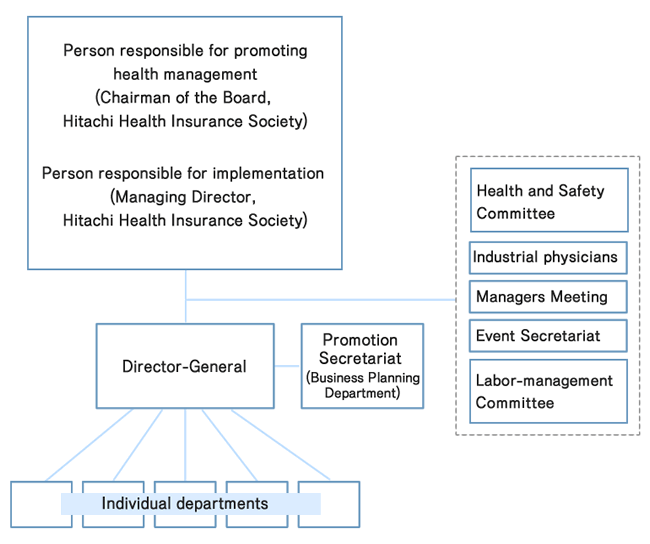 Identifying as its unchanging approach the basic principle of the Hitachi Group Health and Safety Policy “Health and Safety Always Comes First,” the Hitachi Health Insurance Society promotes both safety activities and health management activities intended to maintain and improve the health of employees.